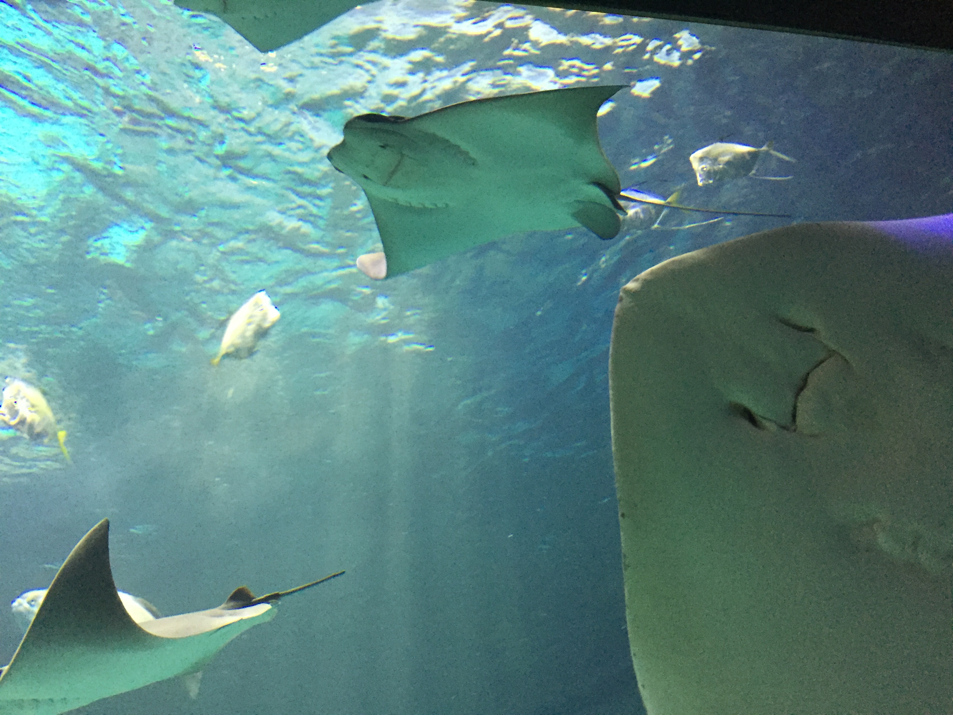 It was an amazing mid-winter afternoon escape. We watched one of their divers feed the stingrays just feet away from us. Stingrays are incredibly graceful, floating and gliding effortlessly, but at feeding time, they’ll flock around the diver like a scene out of Alfred Hitchcock’s The Birds, opening their mouths to gobble up the fish being offered.