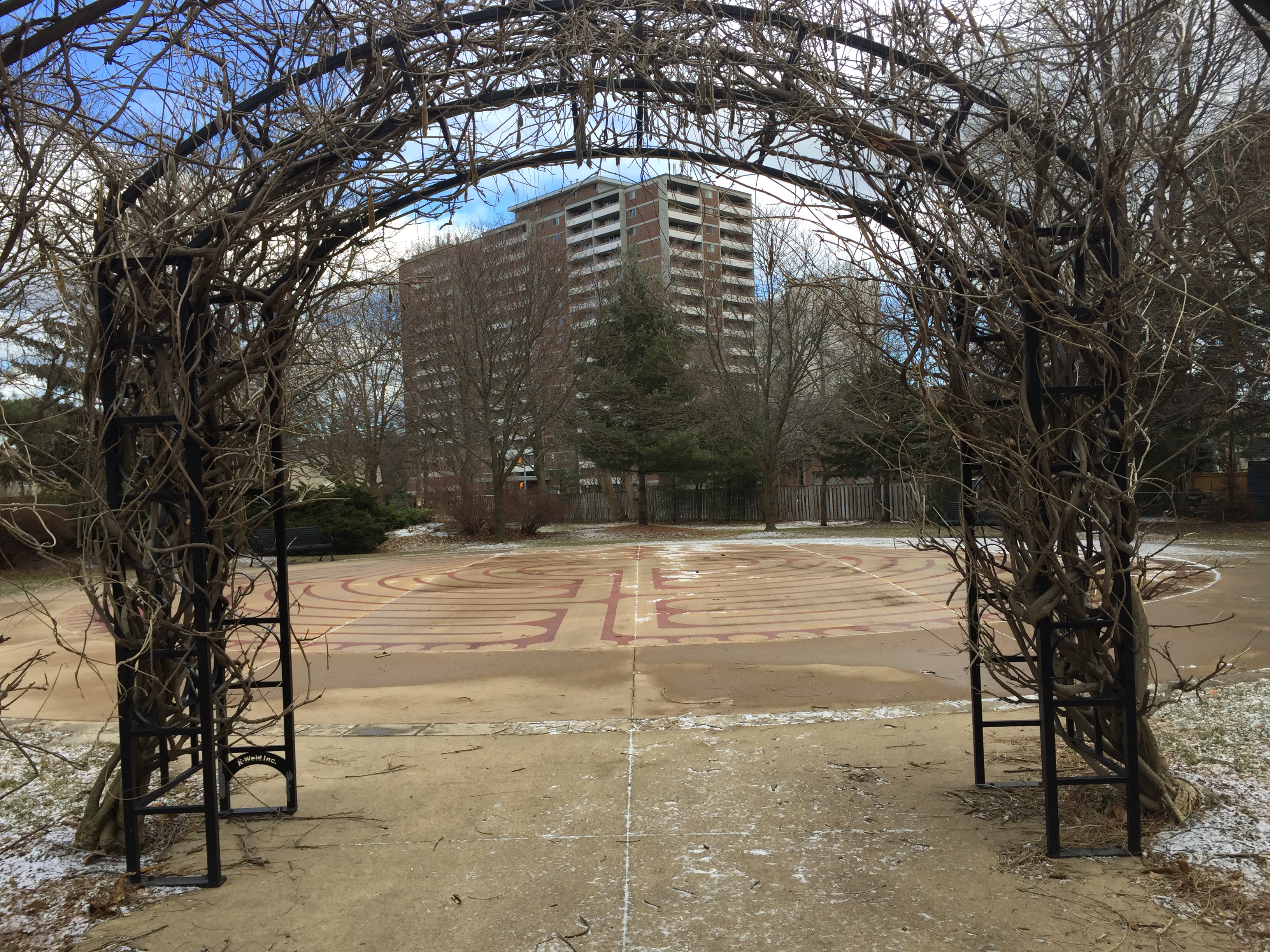 I walked to Central Park in Burlington and to my left at the entrance of the park, there was a labyrinth. I stopped and read the plaque.