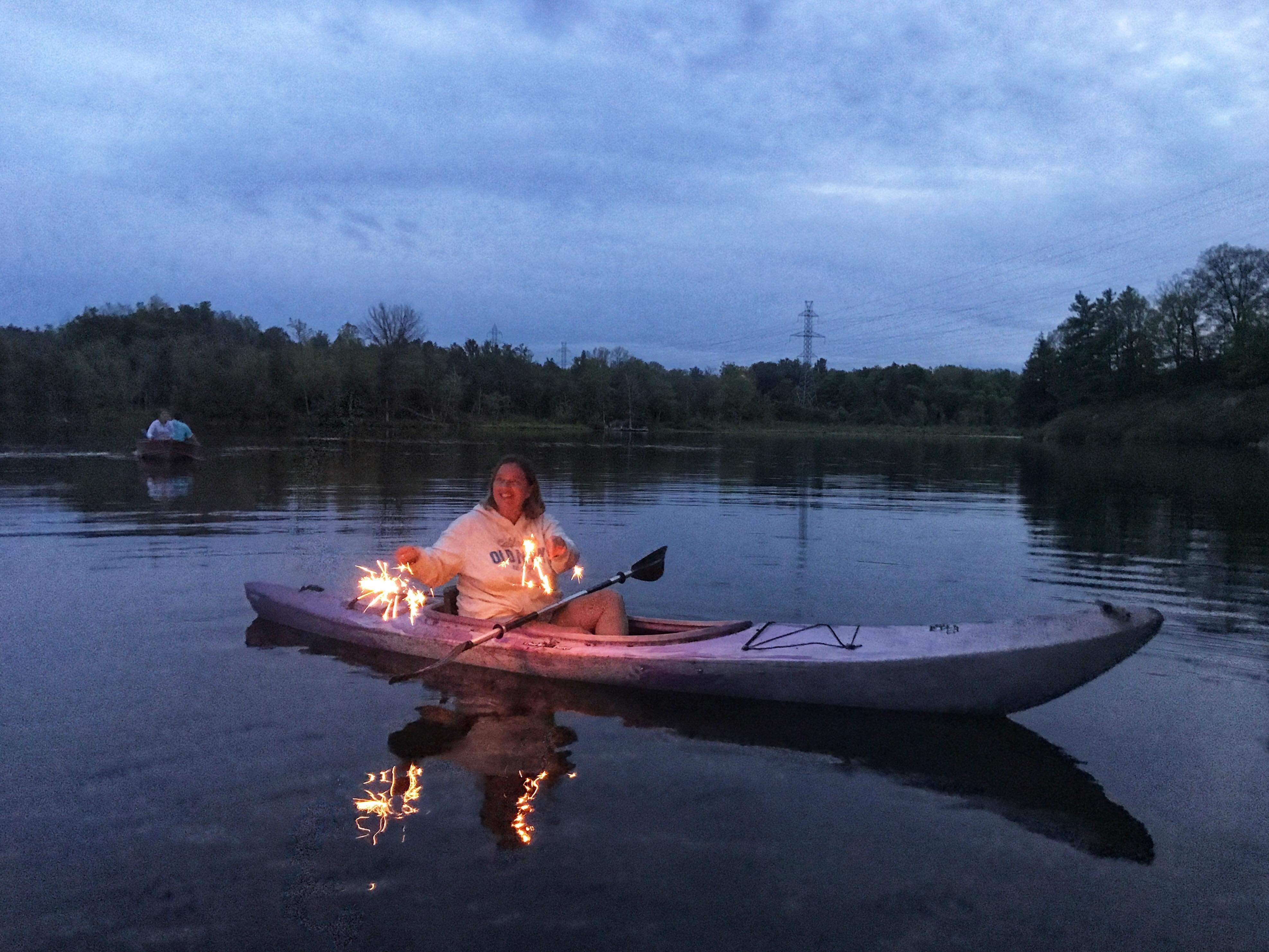 After the show, we lit up sparklers on the dock and in the boats. From my kayak, I wrote the birthday girl’s name in the air with my sparkler, just like we did when we were kids.