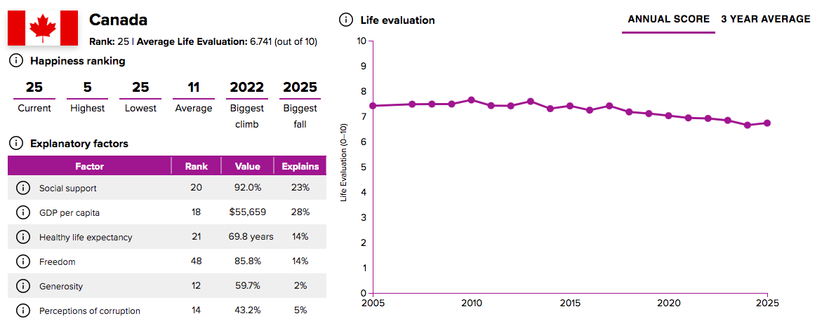 • In a ranking of happiness changes for under-25s, the United States, Canada, Australia, and New Zealand (the NANZ region) rank between 122 and 133 in the list of 136 countries.