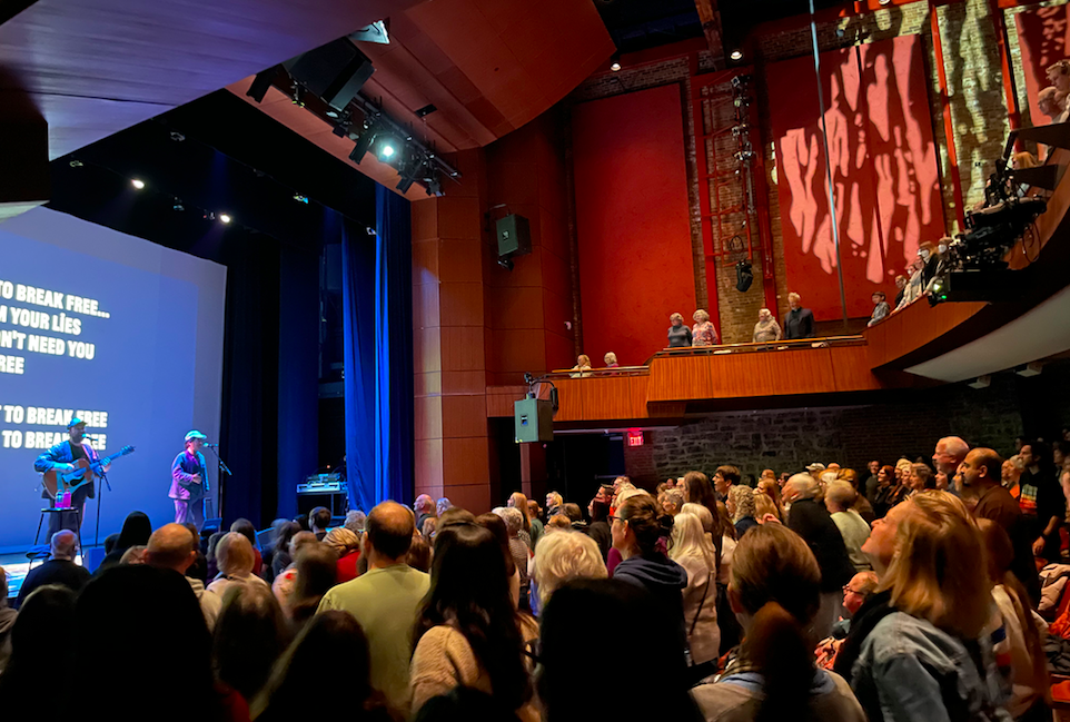 It was surprising to see how quickly the audience came out of their shell. As adults, we tend to be self-conscious when we sing, especially if we aren’t blessed with a great voice, but the sheer joy of the music and the experience quickly drowned out our fears and feelings of self-consciousness, and soon everyone was singing in full voice.