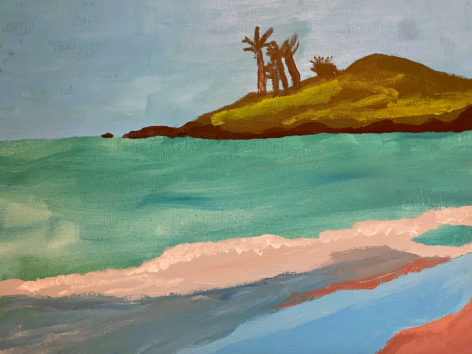 I signed up for a 3-hour workshop where the theme was painting a beach scene, since it was the dreary winter months. Using a photo as our inspiration, my friend Angela and I spent the next three hours practising our brush strokes painting white sand beaches, blue waters and palm trees. While people ooh’ed and aah’ed over each other’s canvases, mine somehow ended up resembling L.A. after the wildfires. One guy actually said to me, “Yeah, those palm trees aren’t good.”