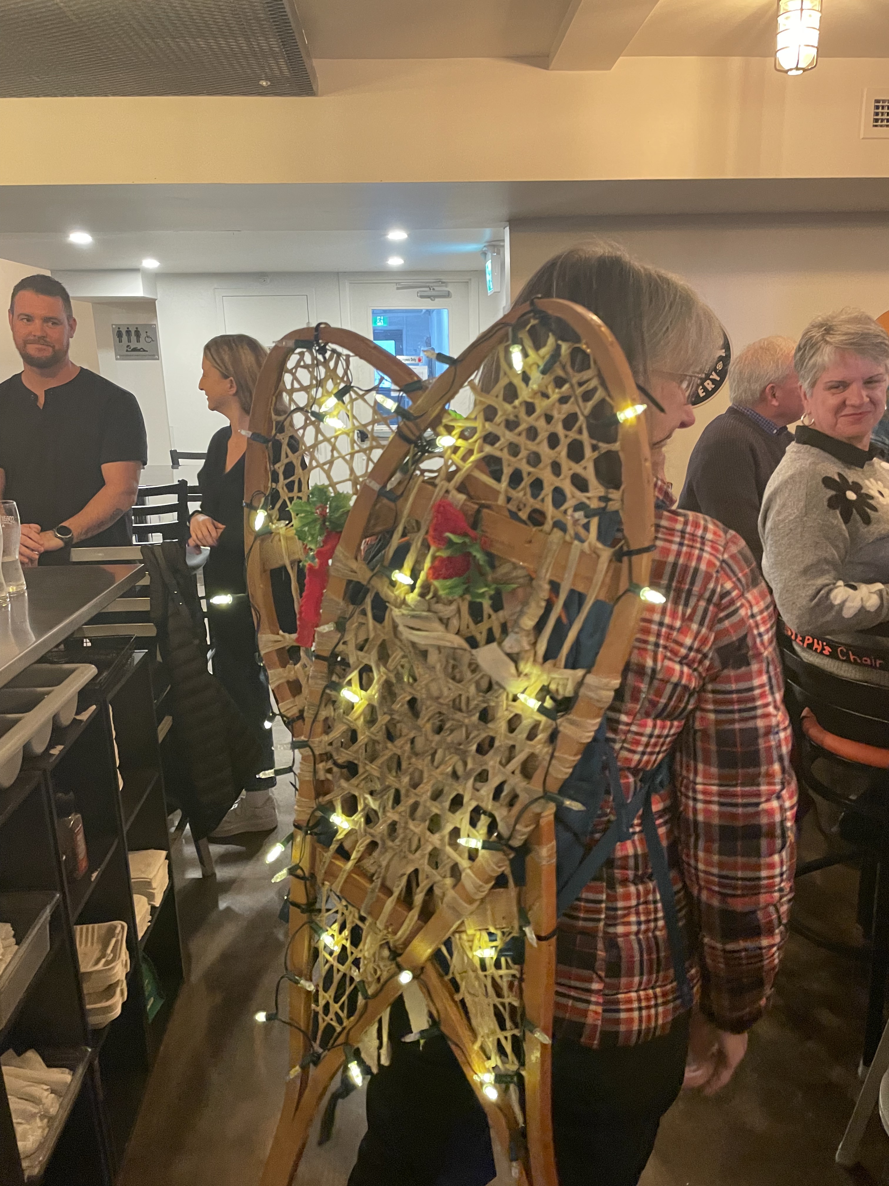 Fast forward another decade (where does the time go?) to yesterday. It was such a special day. Our friend Lorna showed up with snowshoes and Christmas lights on her back since she was walking in the Kingston Santa Claus parade after with the Rideau Trail Club. Dave’s sister and husband, my brother and our cottage neighbour Mark came all the way from Hamilton and Toronto for the party, and there was lots of laughs had, beer drunk, and fish stories told. As Dave said, it was a wonderful intersection of the many cherished friends and connections we’ve made over the years since moving to this area.
