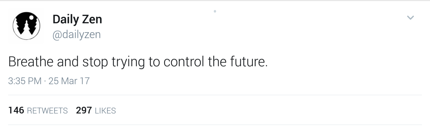 I now follow a couple of Twitter feeds to provide daily reminders to slow down and value each moment. Buddha Quotes (@ByBuddha) and Daily Zen (@dailyzen).